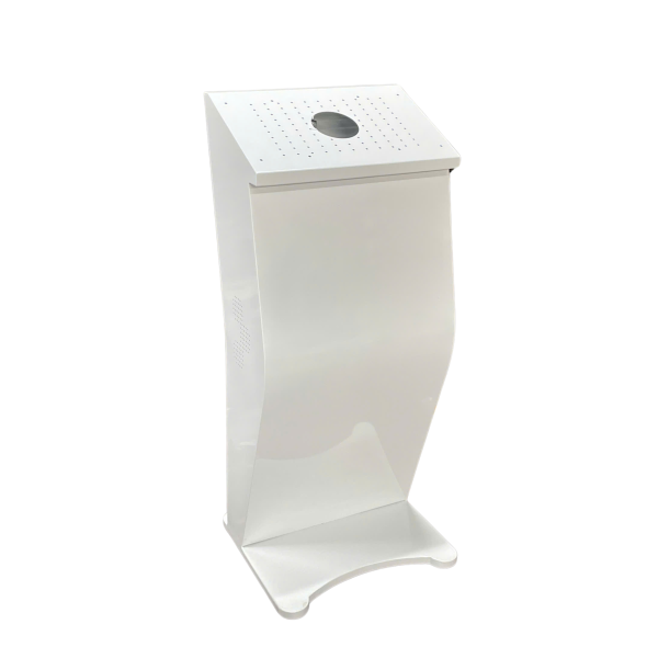 Màu trắng láng tạo cảm giác hiện đại, sạch sẽ. Kiosk có chân đế và chân chén giúp cân bằng tốt trên nhiều loại mặt sàn, đảm bảo hình thức và độ vững chắc.
