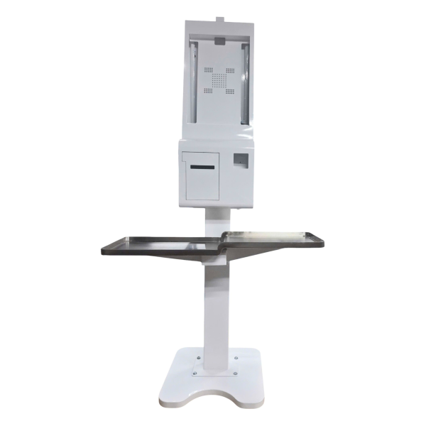 Khung kiosk làm từ thép sơn tĩnh điện dày 1.2mm, có độ bền cao, chống gỉ sét và chịu va đập hiệu quả. Thiết kế tổng thể kích thước 1600H250D550Wmm cho dáng đứng gọn, tiết kiệm diện tích nhưng vẫn vững chắc khi vận hành.